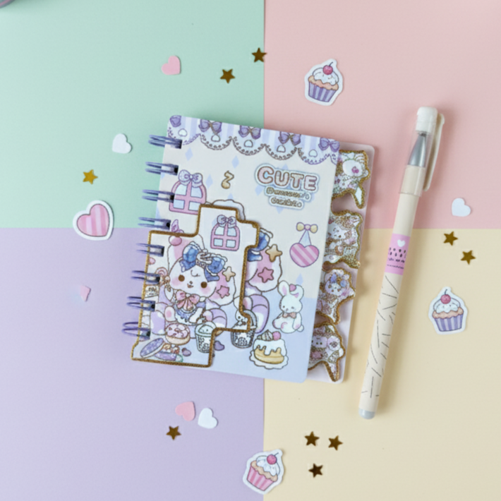 📒 1 mini caderno kawaii com divisórias – compacto, colorido e perfeito para anotações criativas ou organização do dia a dia.